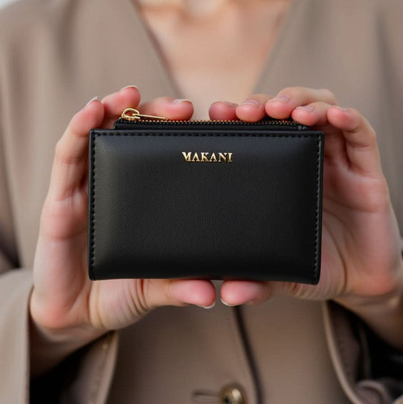 Klein, praktisch und richtig stylish – das Liam Wallet ist genau das, was du brauchst, wenn du Minimalismus und Eleganz liebst. Das hochwertige PU-Leder und das goldene Makani-Logo machen sie zu einem echten Hingucker, der sich perfekt in jede Handtasche schmiegt.