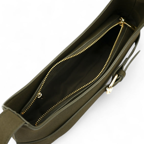 Ausgestattet mit einem sicheren Reißverschluss sowie einem längenverstellbaren Schultergurt (54–98 cm) kannst du die Tasche sowohl elegant über der Schulter als auch lässig als Crossbody tragen. Das durchdachte Innenleben bietet dir ein geräumiges Hauptfach mit zwei praktischen Innenfächern – ein Reißverschlussfach für deine Wertsachen und ein offenes Fach für schnellen Zugriff.