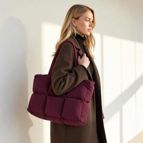 Die voluminöse Steppstruktur macht die Tasche zum echten Blickfang, bleibt dabei aber wunderbar leicht. Dank der weich gepolsterten Henkel liegt sie angenehm in der Hand und begleitet dich entspannt durch Stadt, Büro oder Wochenendtrip.