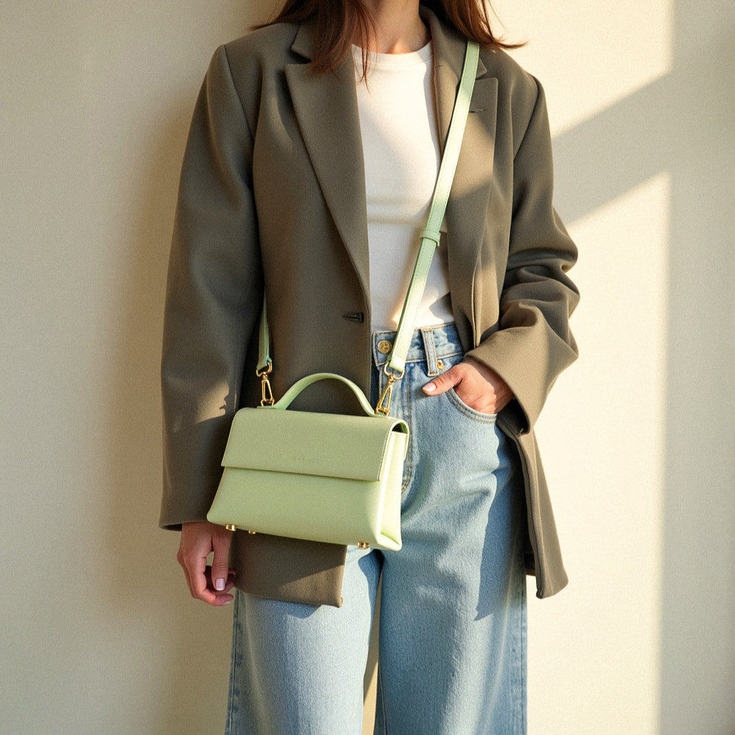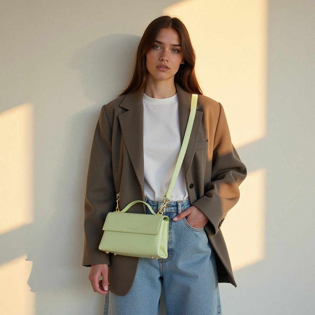Ob in klassischem Schwarz, elegantem Dunkelbraun, zartem Butter, femininem Rose oder modernem Pistachio – die NANI ist ein vielseitiges Accessoire, das zu jedem Look passt. Ein stilvoller Allrounder, der Nachhaltigkeit, Qualität und Design vereint – perfekt für Alltag und besondere Anlässe.