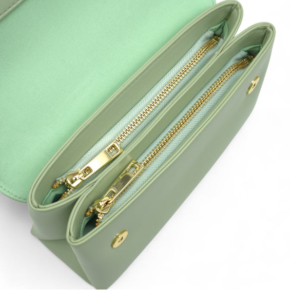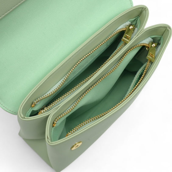 Mit ihren kompakten Maßen von 23 x 8 x 14 cm bietet NANI trotz schlanker Silhouette viel Stauraum. Zwei separate Hauptfächer mit Reißverschluss sorgen für Übersichtlichkeit und Sicherheit, ergänzt durch je ein Innenfach – eines mit Zipper, eines offen – für kleine Essentials. Der praktische Magnetverschluss ermöglicht gleichzeitig schnellen Zugriff. Die Tasche wird mit einem 1,8 cm breiten, längenverstellbaren Taschengurt (109 –122 cm) geliefert, der bequemes Tragen sowohl als Schulter- als auch als Crossbody-Bag erlaubt.