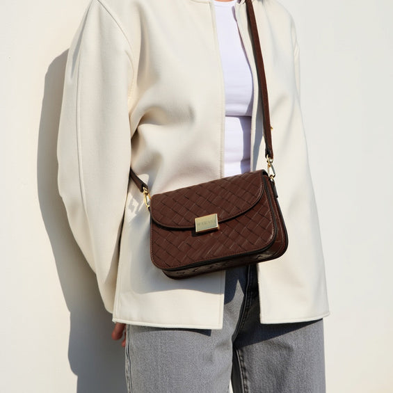 Die Pualani Handtasche ist der perfekte Begleiter für alle, die Eleganz und Funktionalität lieben. Hergestellt aus hochwertigem PU-Leder, begeistert sie mit einem geflochtenen Design und edlen goldfarbenen Details. Der warme Braunton verleiht ihr eine zeitlose Ausstrahlung, die sich mühelos mit jedem Outfit kombinieren lässt – von lässig bis schick.