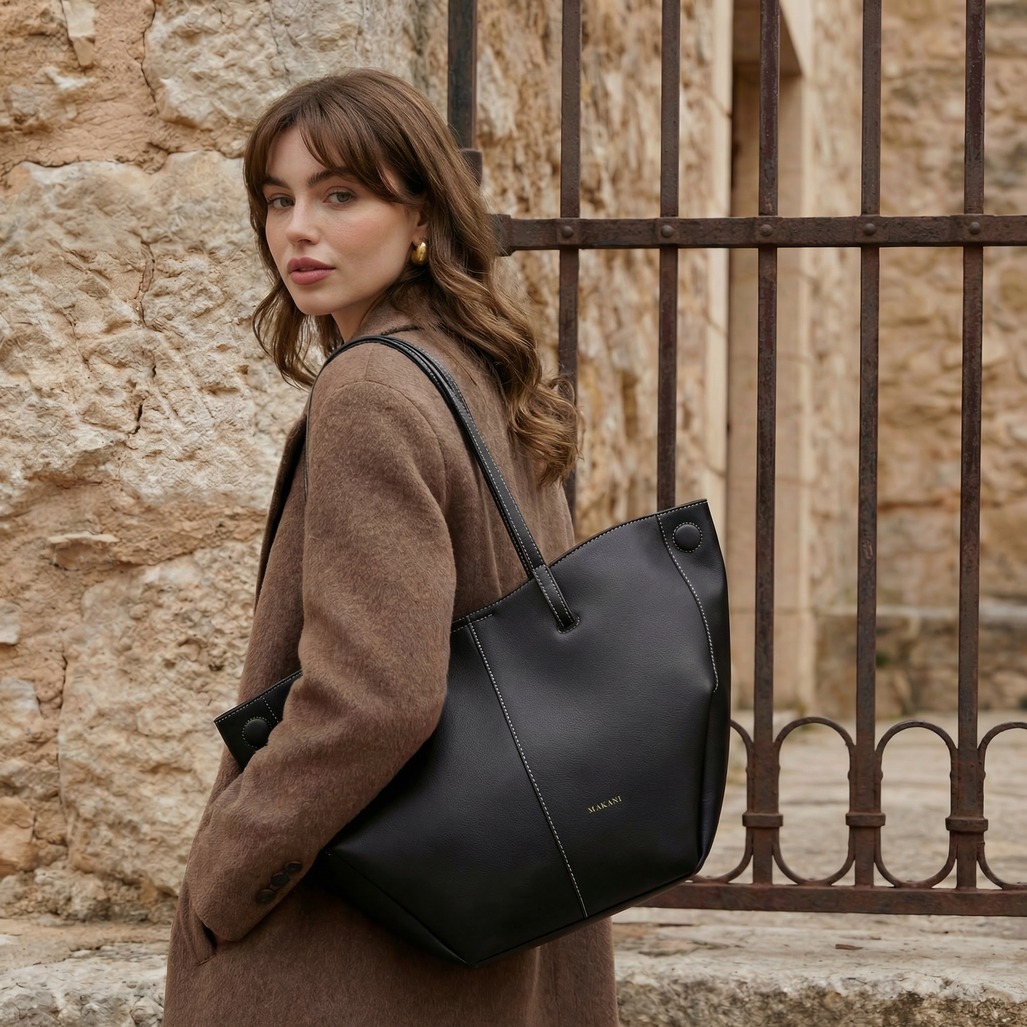 EMALIA ist eine zeitlose Tote Bag für Frauen, die minimalistisches Design und funktionale Eleganz schätzen. Mit ihrer klaren Silhouette und der strukturierten Form wirkt sie modern, selbstbewusst und gleichzeitig vielseitig kombinierbar. Die Tasche bietet großzügigen Stauraum für alles, was dich im Alltag begleitet. Von Essentials bis zu größeren Gegenständen und behält dabei stets ihre elegante Form. Die angenehm langen Henkel sorgen für hohen Tragekomfort, ob im Büro, in der Stadt oder auf Reisen. EMALIA vereint Qualität, Stil und Alltagstauglichkeit in einer modernen Damen Handtasche, die nicht Trends folgt, sondern bleibt.