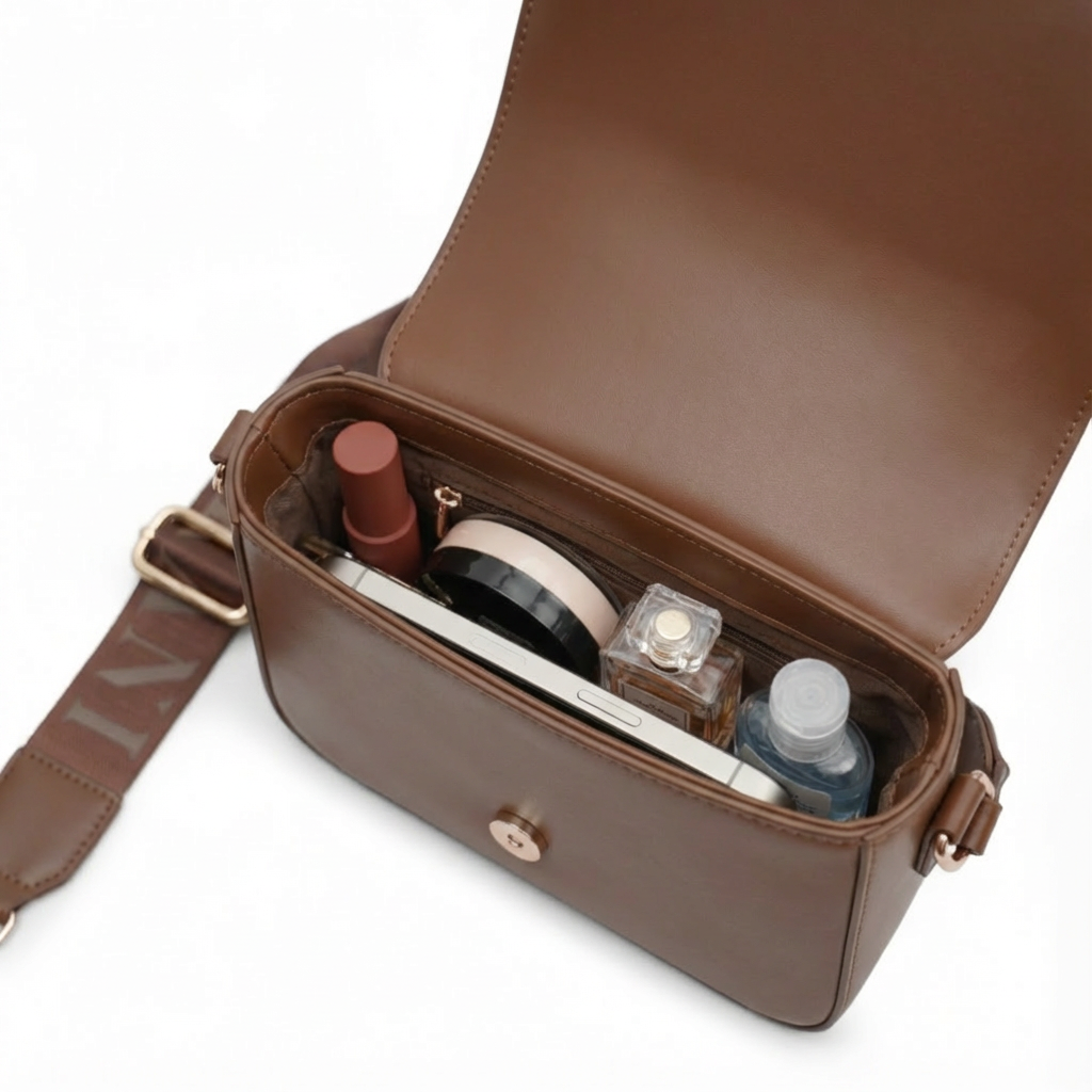 Die Halfmoon Bag, ein atemberaubender Mix aus Eleganz und Funktionalität, ist dein idealer Begleiter für jeden Anlass. Hergestellt aus 100% hochwertigem veganem PU Glattleder, kombiniert sie Nachhaltigkeit mit modischem Stil. Ihre goldenen Details aus Messing verleihen ihr einen Hauch von Luxus und Glanz.