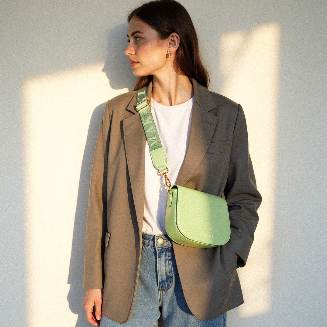 Die Halfmoon Bag, ein atemberaubender Mix aus Eleganz und Funktionalität, ist dein idealer Begleiter für jeden Anlass. Hergestellt aus 100% hochwertigem veganem PU Glattleder, kombiniert sie Nachhaltigkeit mit modischem Stil. Ihre goldenen Details aus Messing verleihen ihr einen Hauch von Luxus und Glanz.