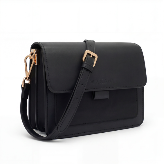 Für die modebewusste Frau ist die Handtasche "VALDA" in der Farbe Schwarz ein unverzichtbares Alltagsaccessoire. Das vegane PU-Glattleder überzeugt mit einer attraktiven Optik sowie einer hohen Widerstandsfähigkeit. Goldene Details aus Messing komplettieren den eleganten Gesamteindruck der Handtasche. Der Magnetverschluss bietet eine einfache Bedienung und schließt die Tasche gleichzeitig zuverlässig. Selbstverständlich bietet die Handtasche viel Stauraum für die wichtigen Accessoires. Portemonnaie, Schlüssel und Smartphone finden in insgesamt zwei Innenfächern und einem Außenfach einen sicheren Platz.